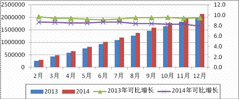 图3:2013年12月以来林安道路运价总指数 二、物流运行质量有所提升 一是物流市场结构不断优化。一方面,钢铁、煤炭、水泥、有色等大宗商品物流需求增速进一步放缓。2014年工业品物流总额为196.9万亿,按可比价增长8.3%,同比回落1.4个百分点。 另一方面,与循环经济相关的再生资源物流总额同比增长14.1%;与民生相关的单位与居民物品物流总额同比增长32.9%。尤其是快递物流业保持高速增长。据国家邮政局的数据显示,2014年,全国快递业务量完成139.6亿件,同比增长51.9%,首次超过美国,跃居世界第一;快递最高日处理量超过1亿件。